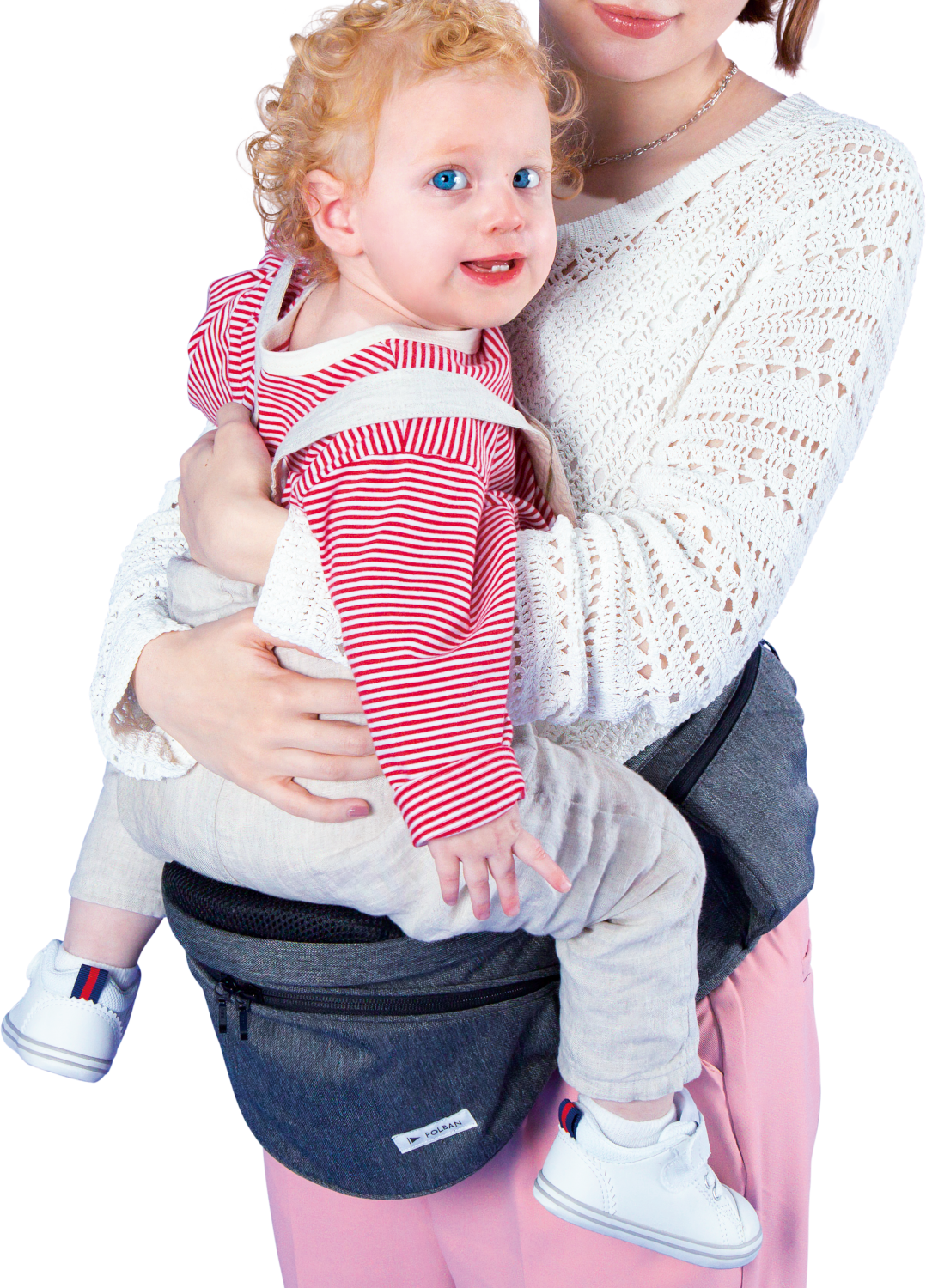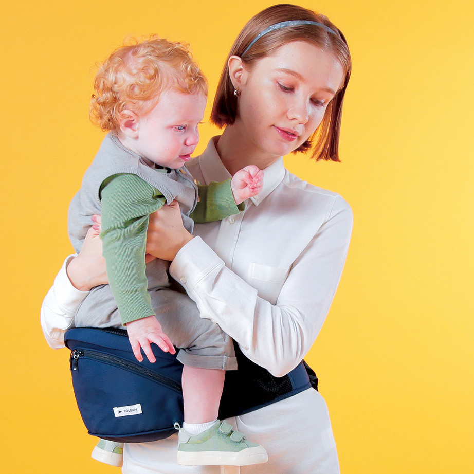 パパ・ママの視界を妨げない安心の腰抱っこ。いつでも一緒にアクティビティを楽しもう。